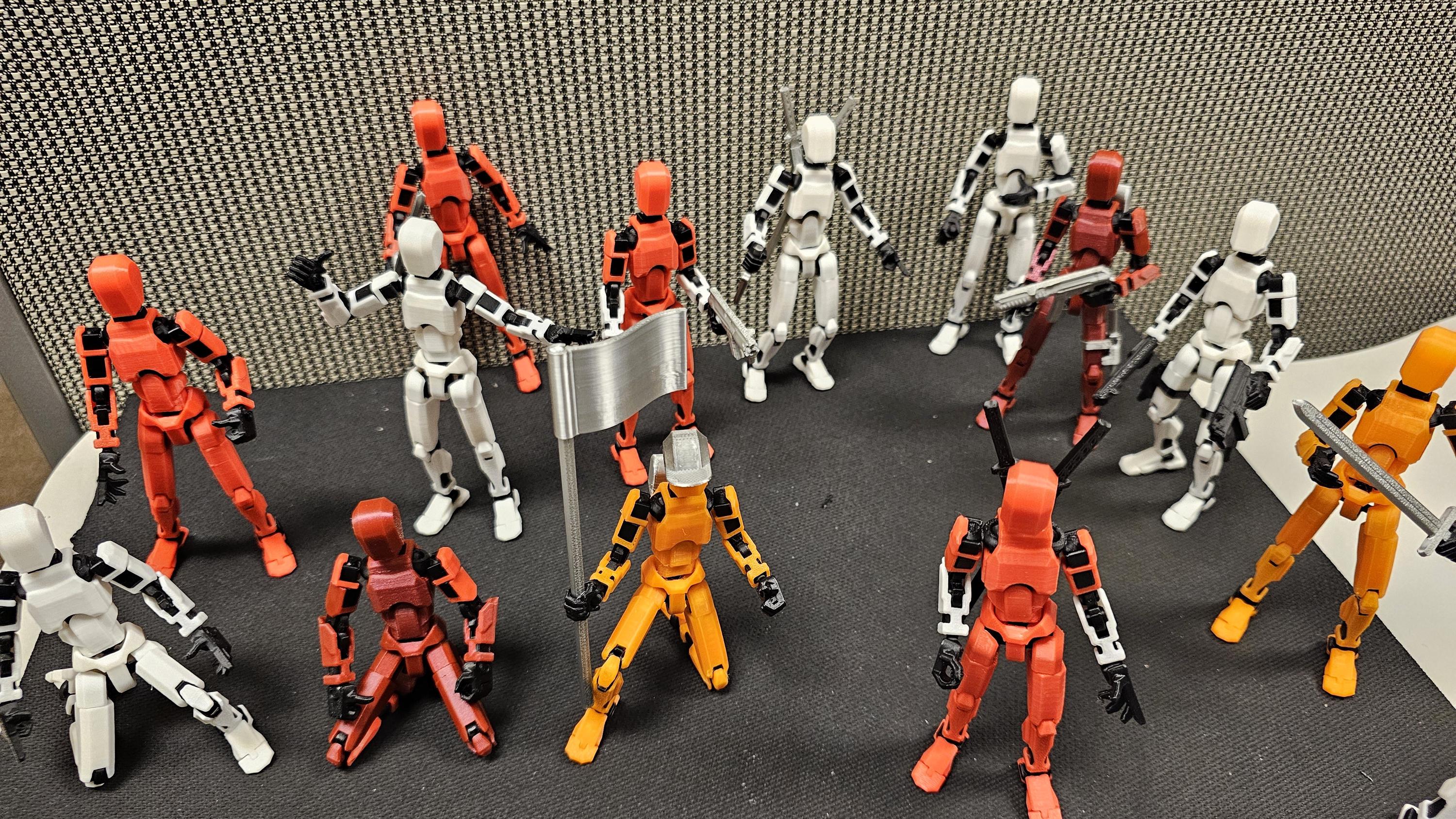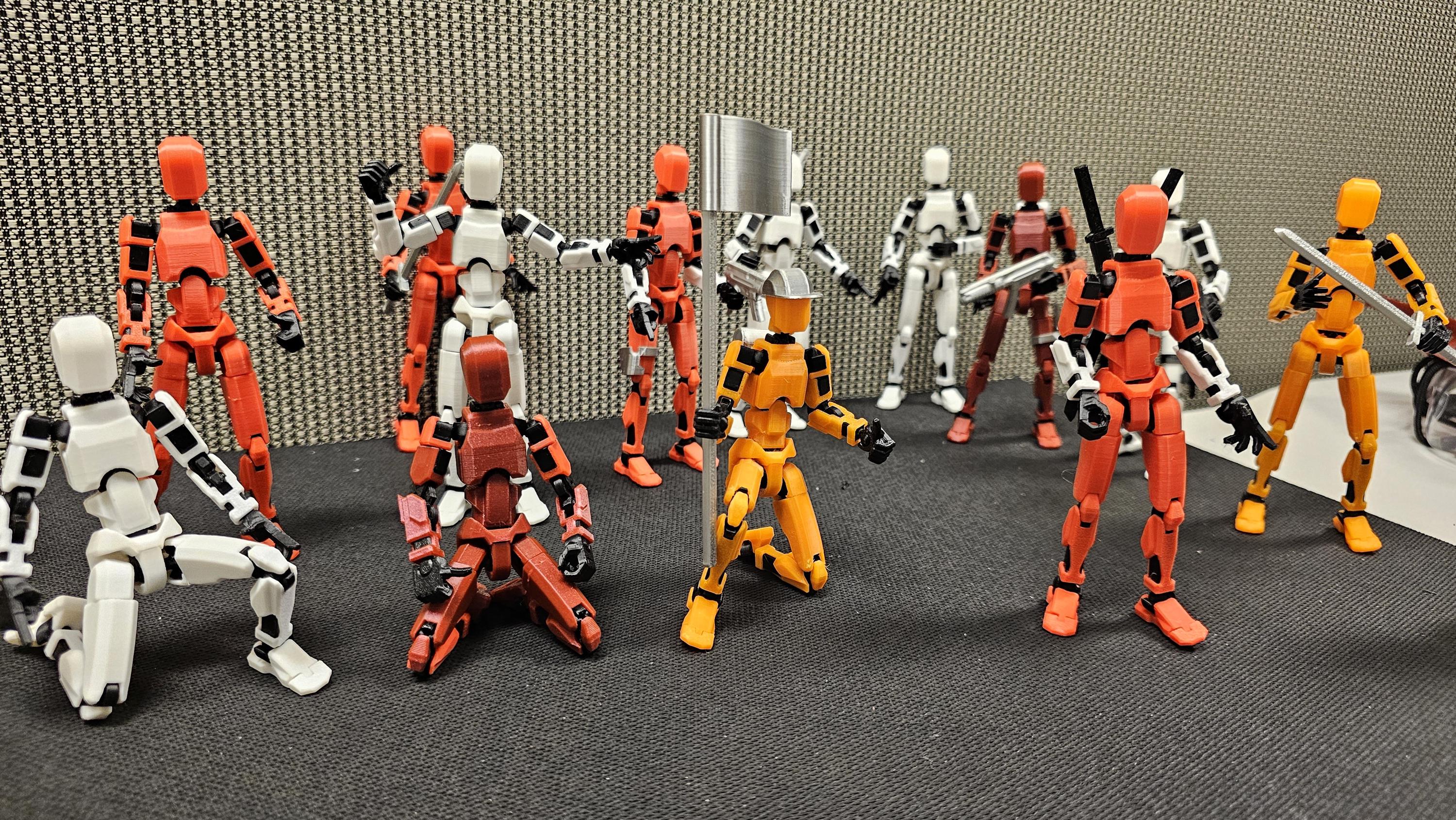 Bring a touch of modern design and articulated artistry to your space with this small army of 3D-printed Dummy13 models – a testament to form, function, and the power of multiples!
