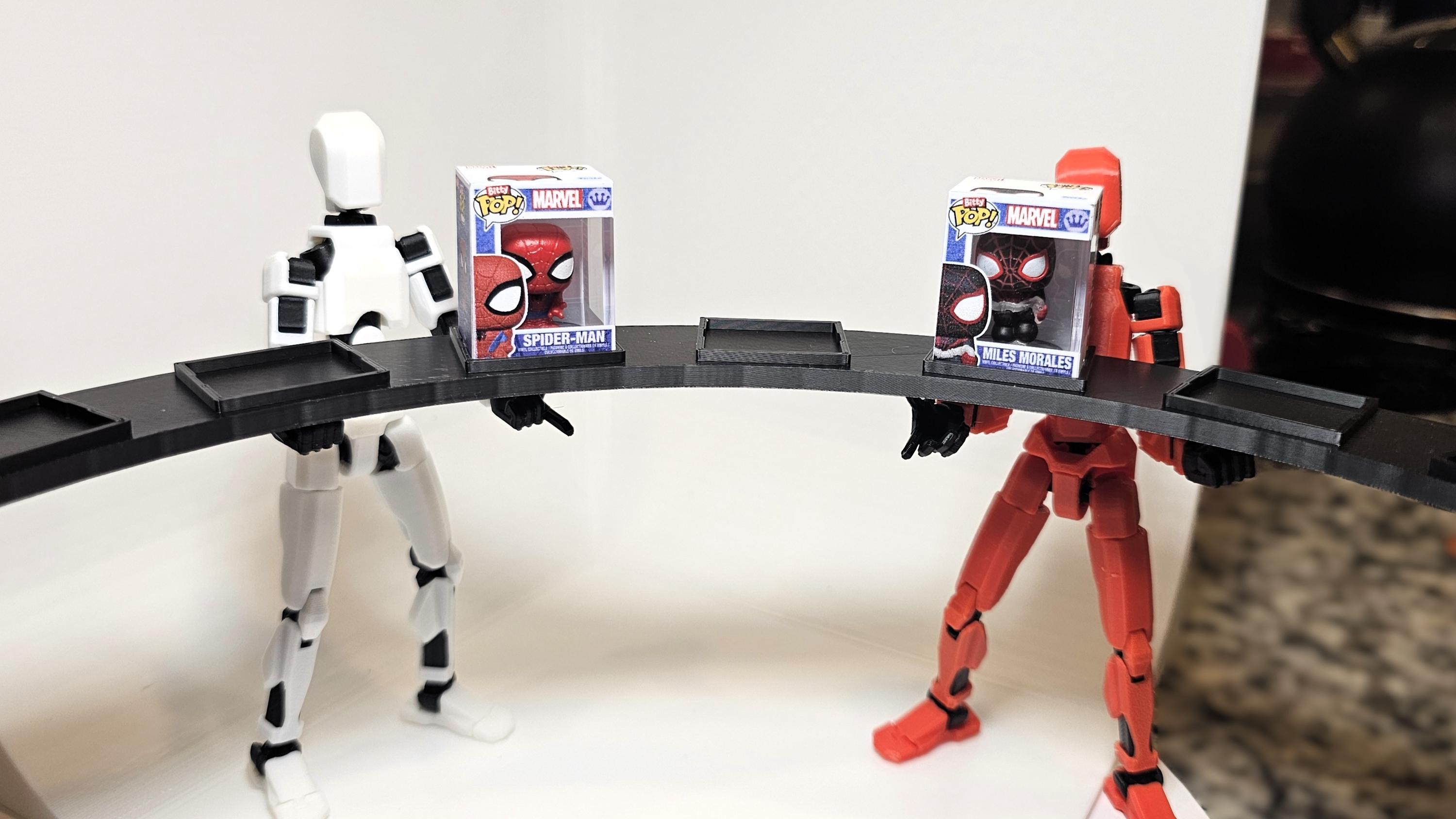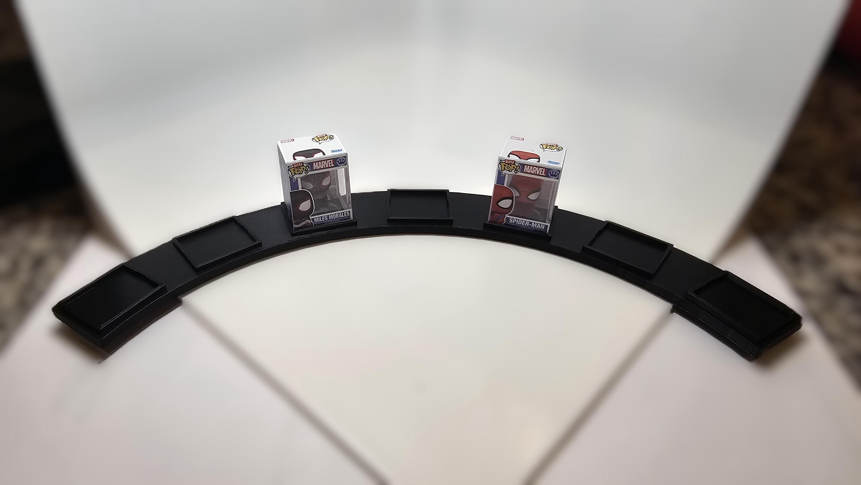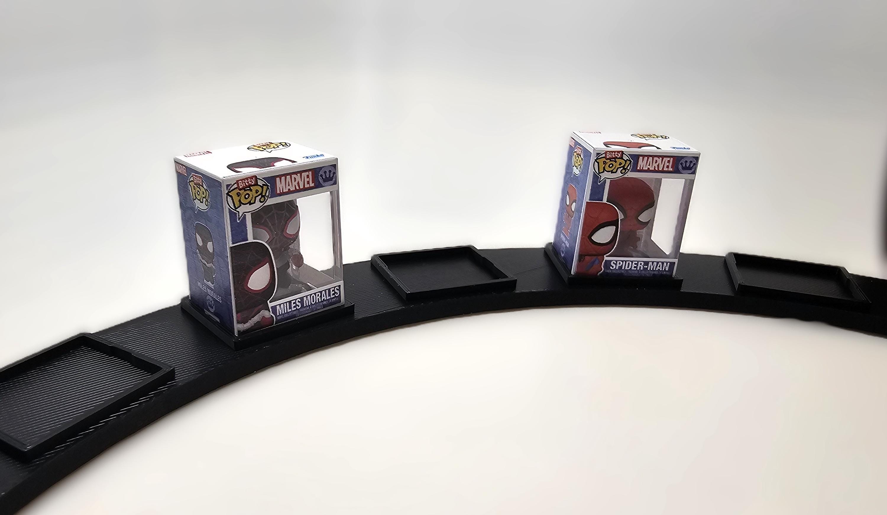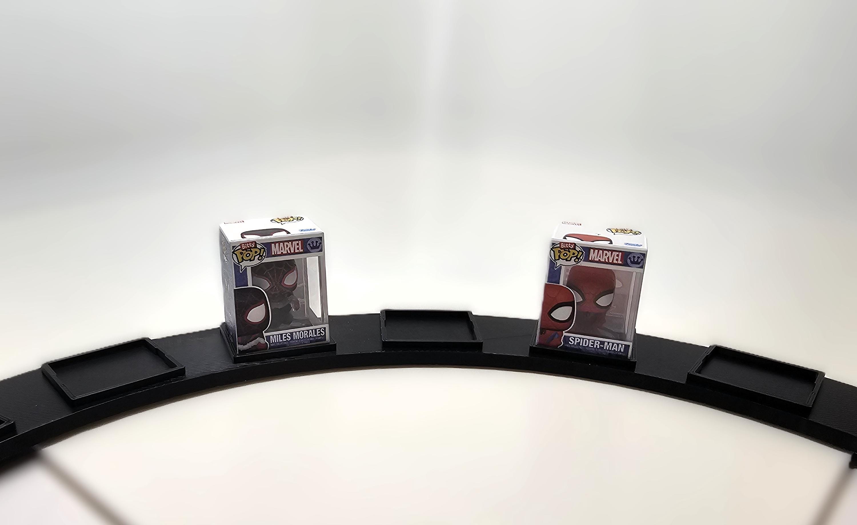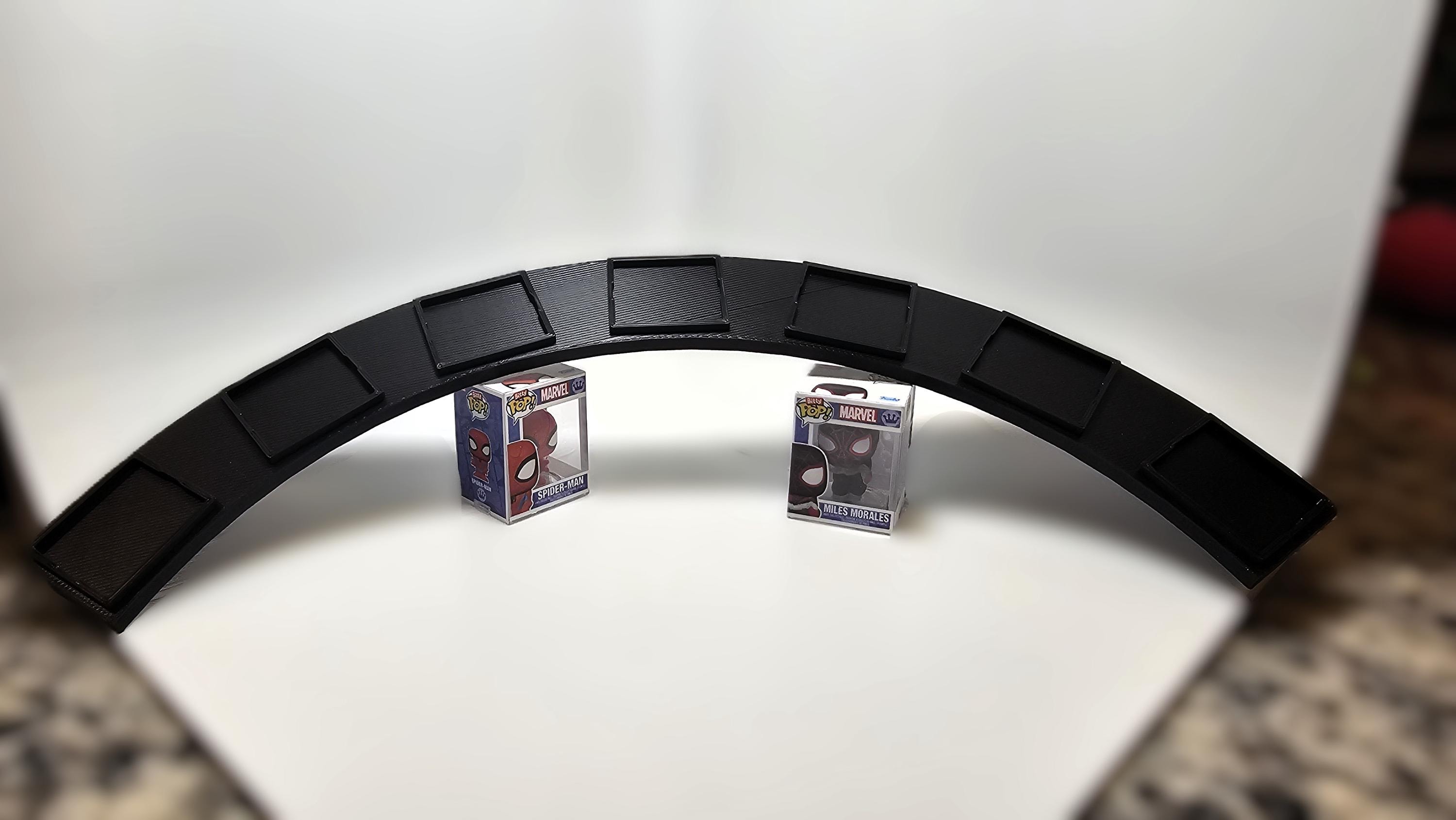 This sleek arc is engineered specifically to hold seven (7) Bitty Pop! figures and their clear acrylic cases in a neat, circular arrangement. Stop stacking them precariously or hiding them in a box—elevate your display and showcase your rarest finds!