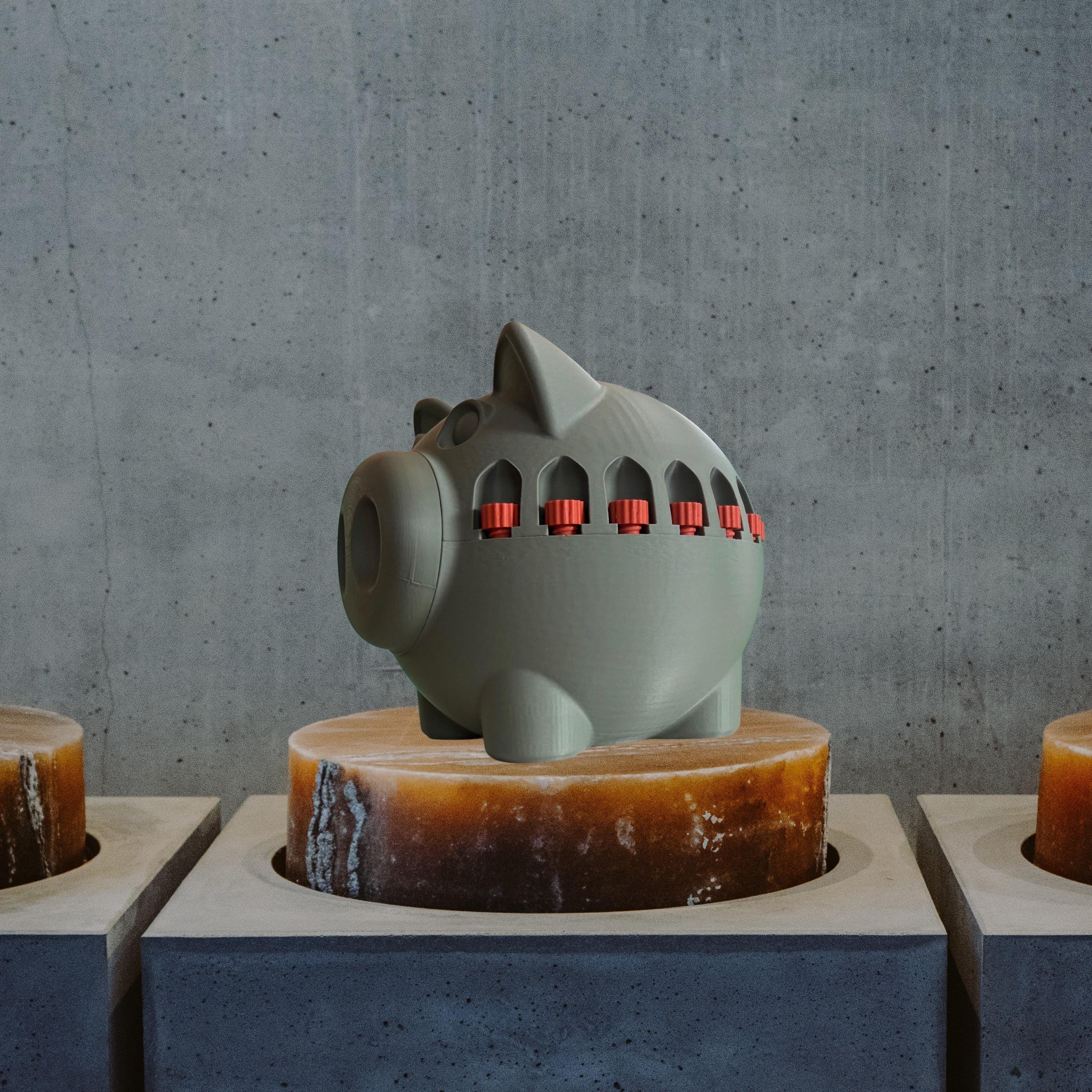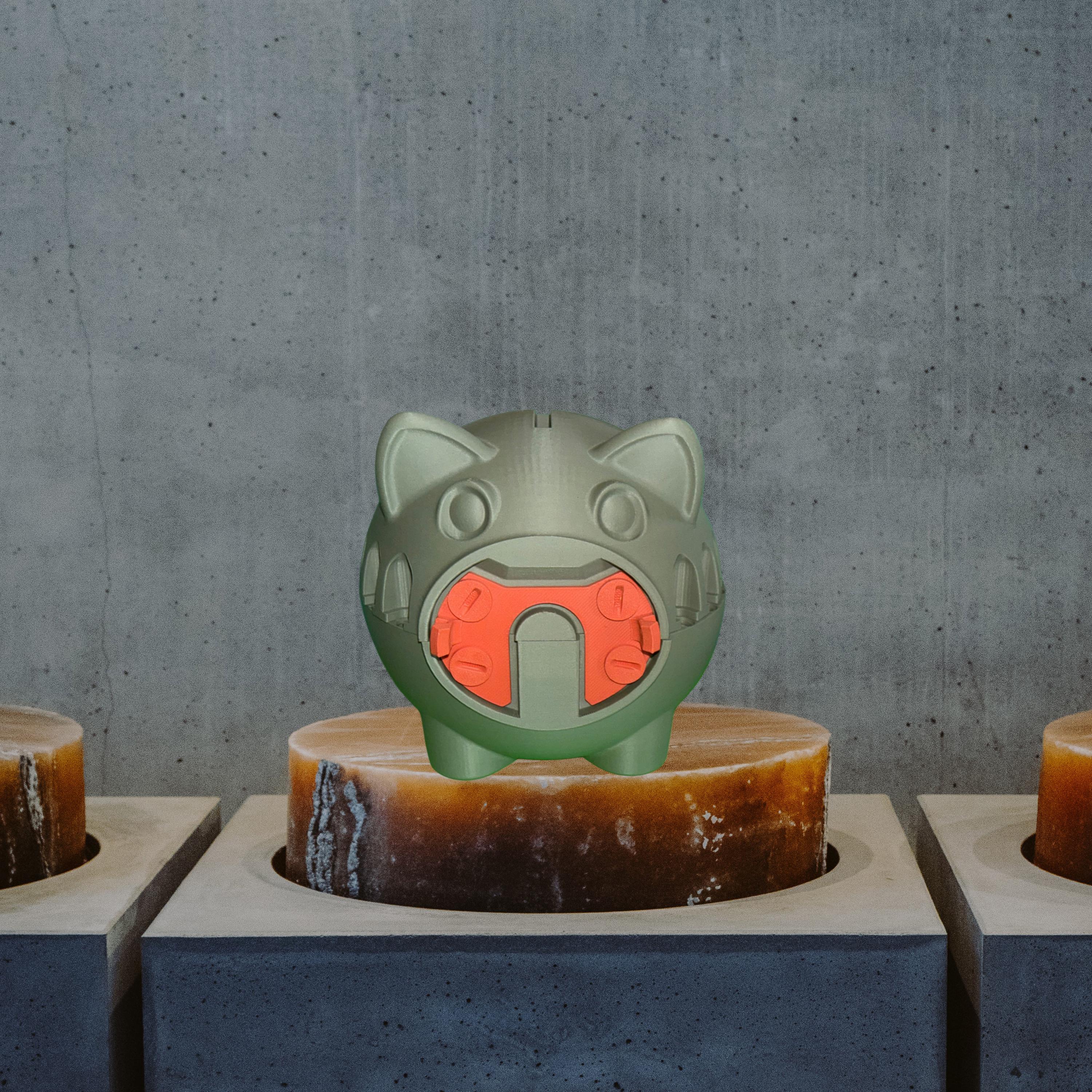 A fun piggy bank for those kids who love playing with tools. There are 17 screws for the body of the piggy bank and 4 for attaching the snout. The screwdriver 'tool' is stored in the snout. An extra 5 body screws will be sent and an extra 2 snout attachment screws; along with 2 extra screwdrivers.