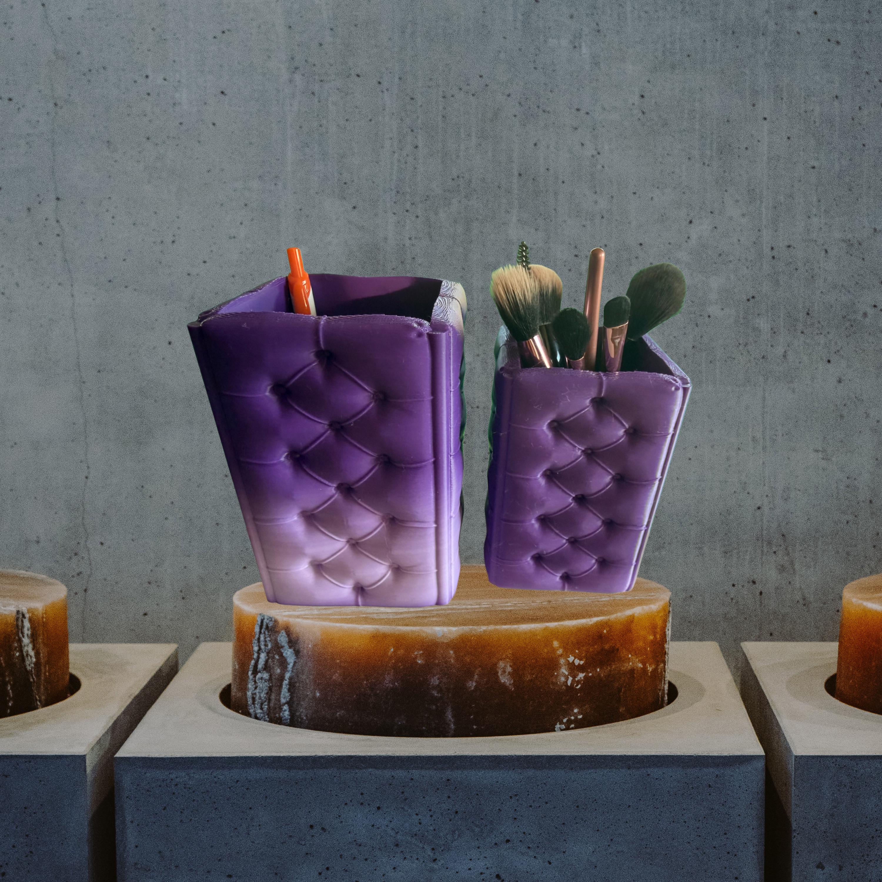 Tufted desk decor to hold pencils, brushes, makeup supplies, and more!