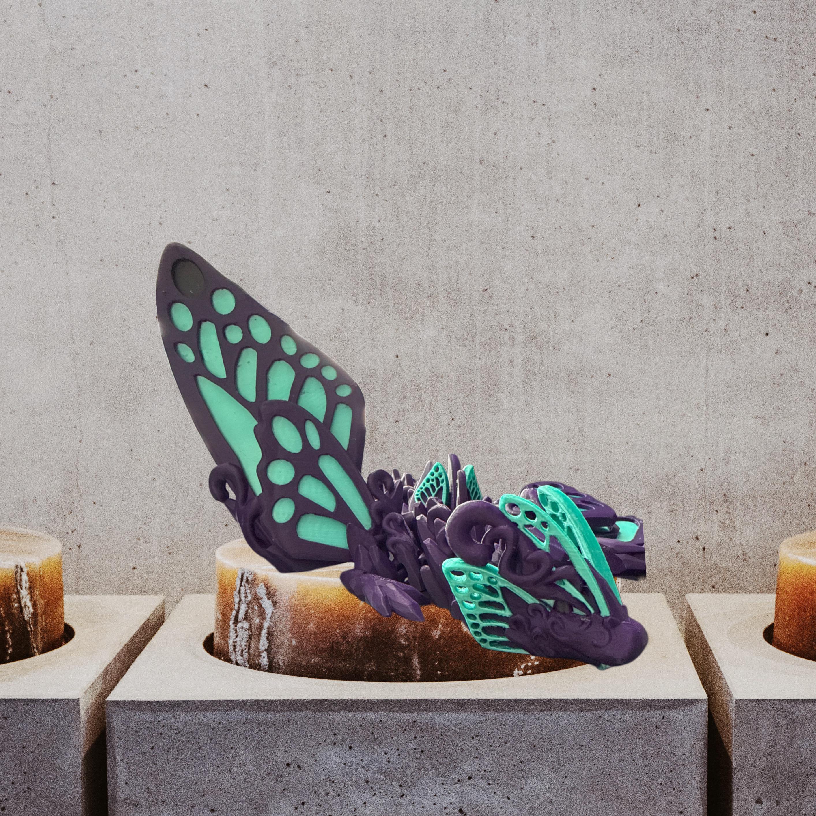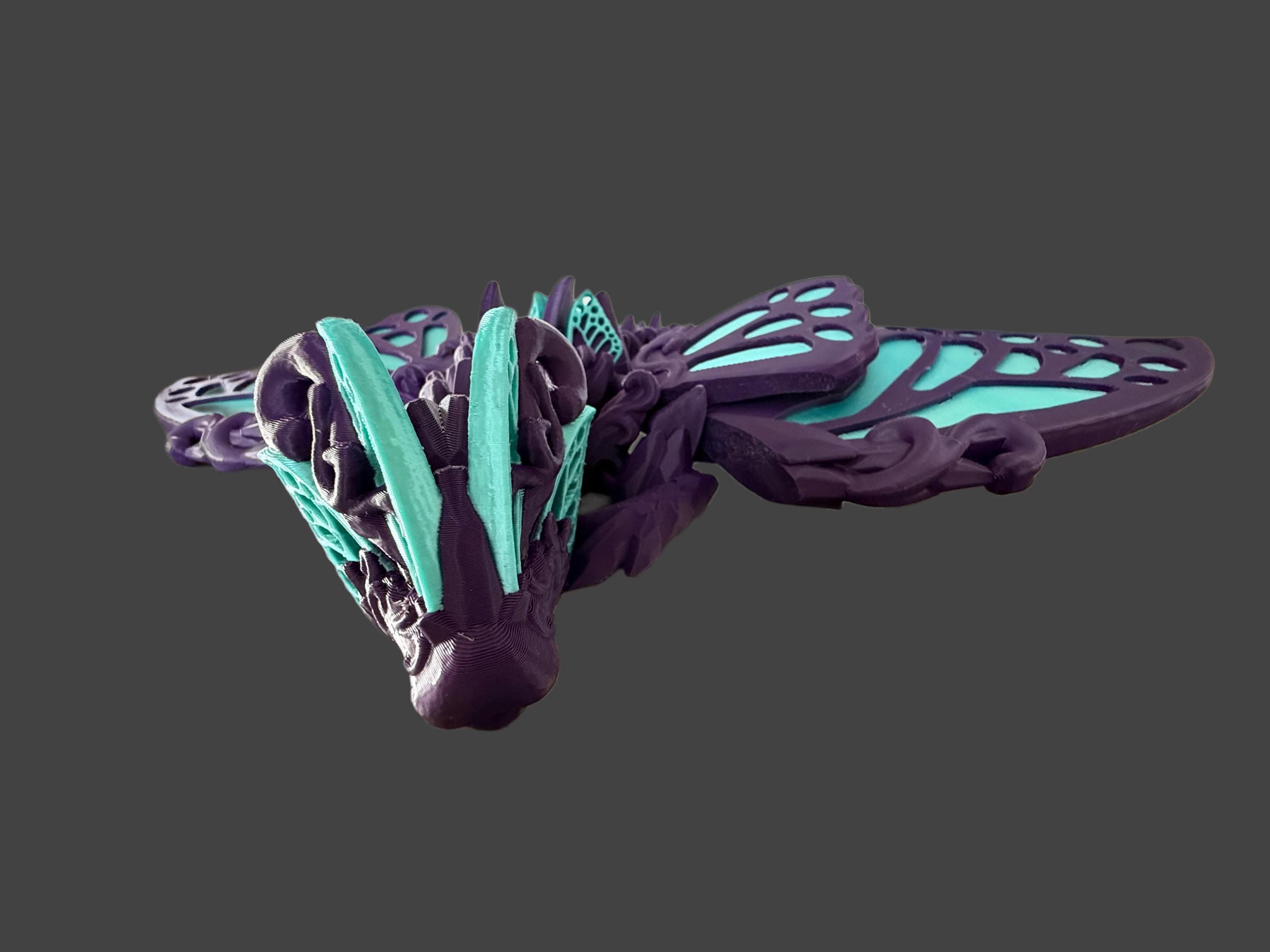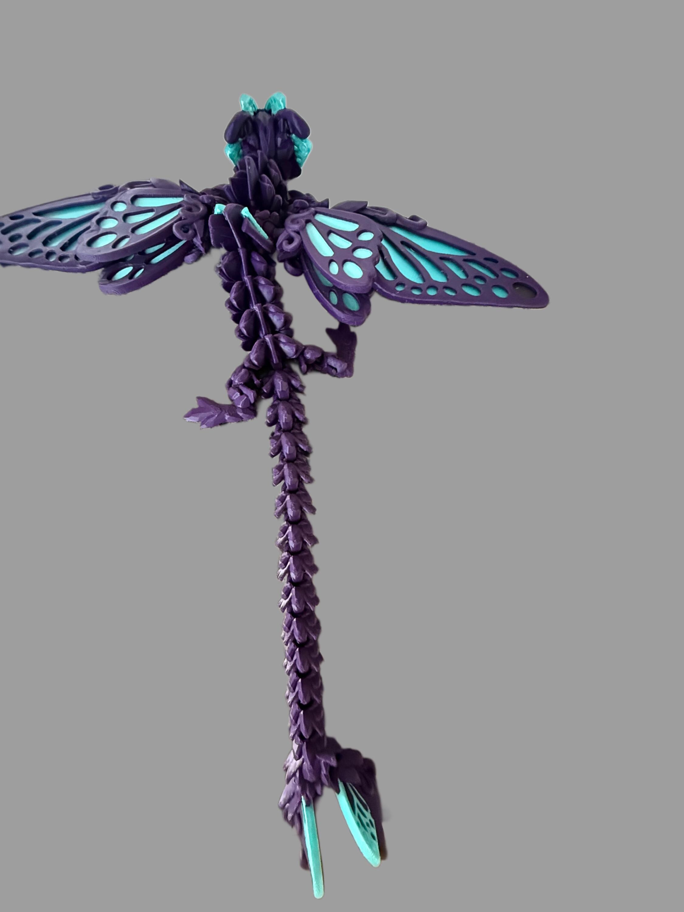 Beautiful butterfly dragon with 360 degree rotating wings. Wings can be closed or opened. It is about 18" long.