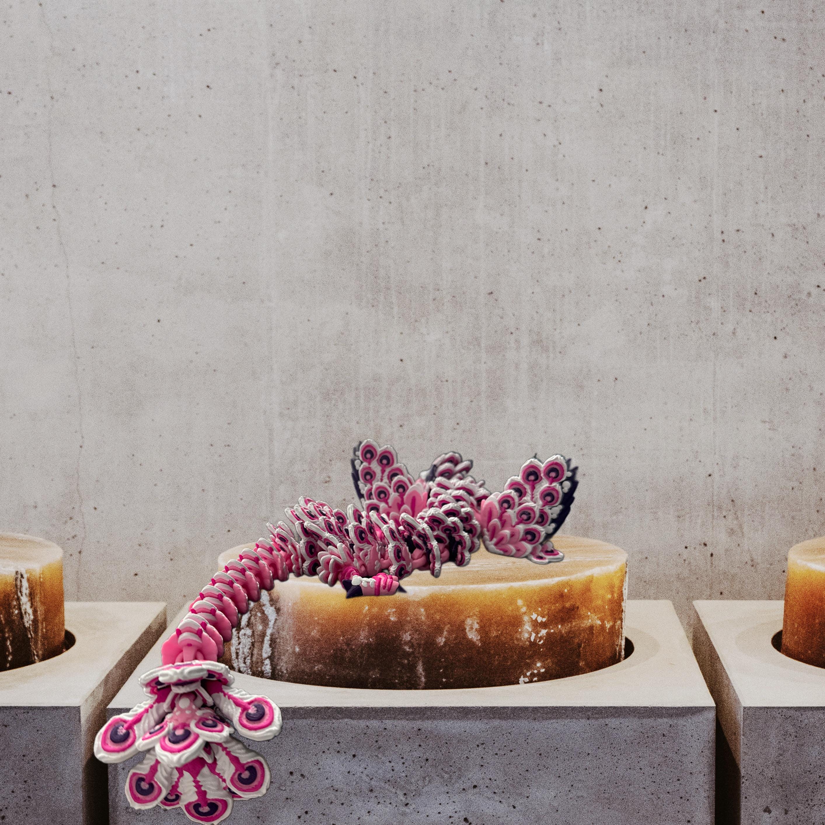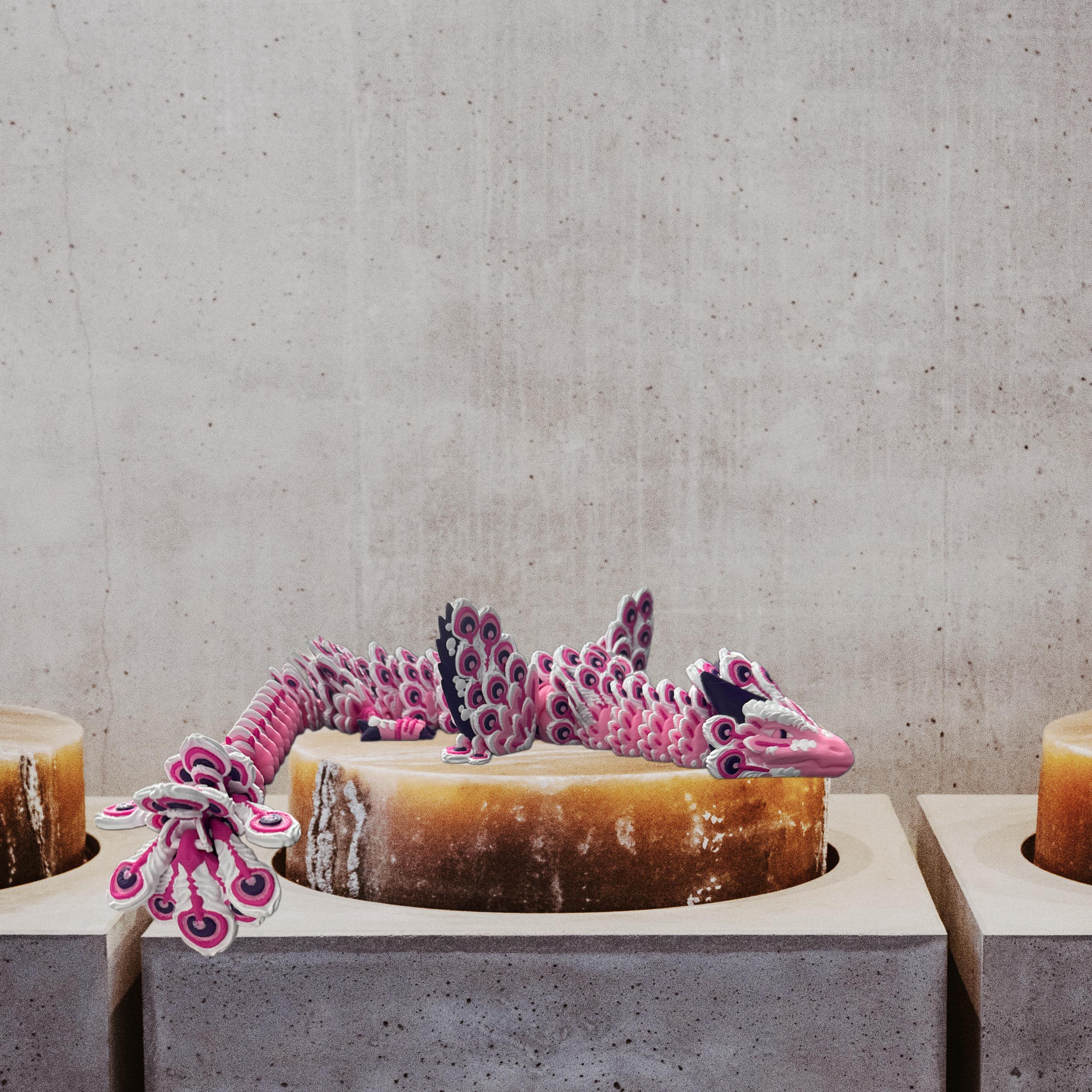 Beautiful Peacock dragon with 360 degree rotating wings. Wings can be closed or opened. It is about 20" long.Please select 4 colors from the drop down and let us know via the personalization box.Designed by Cinderwing3D.