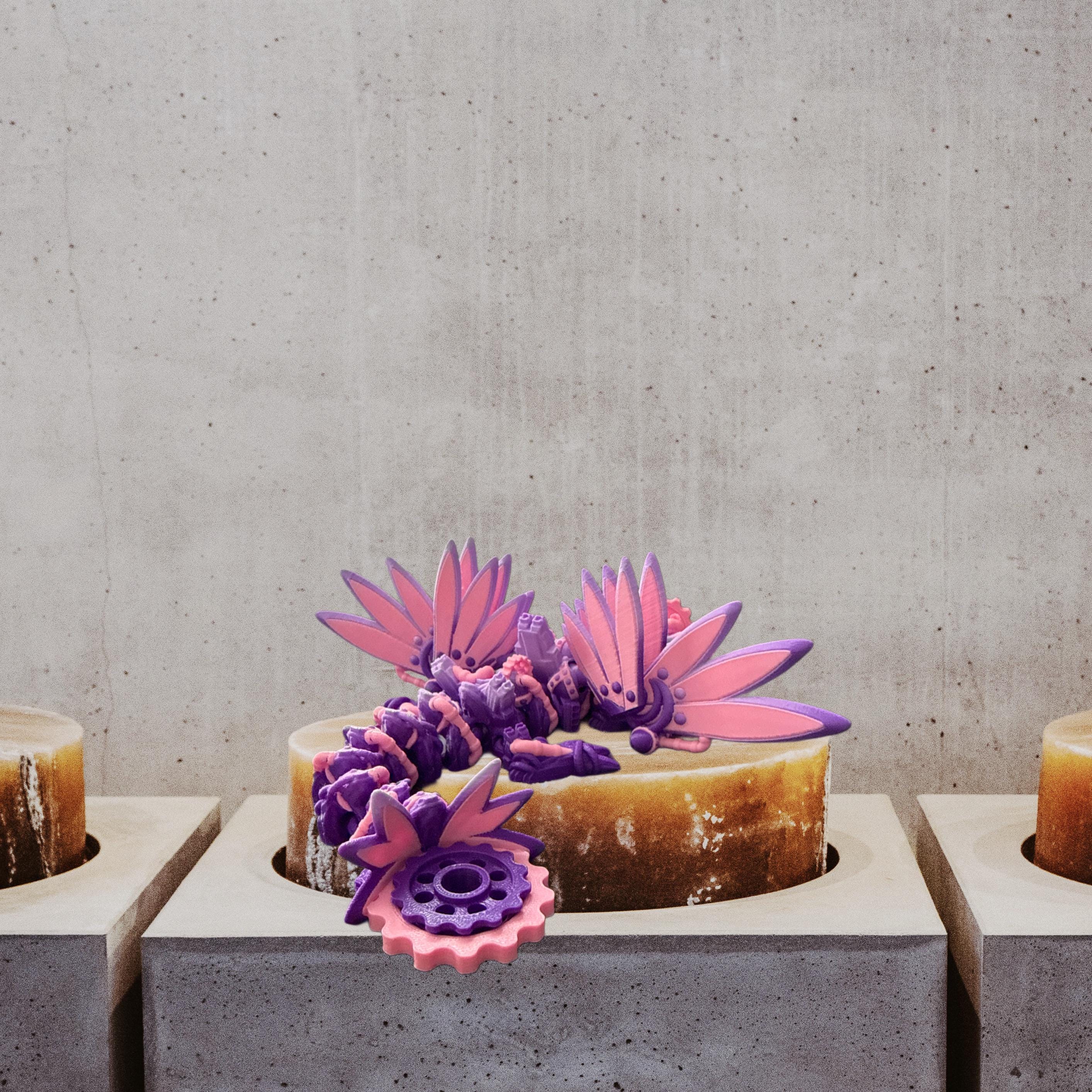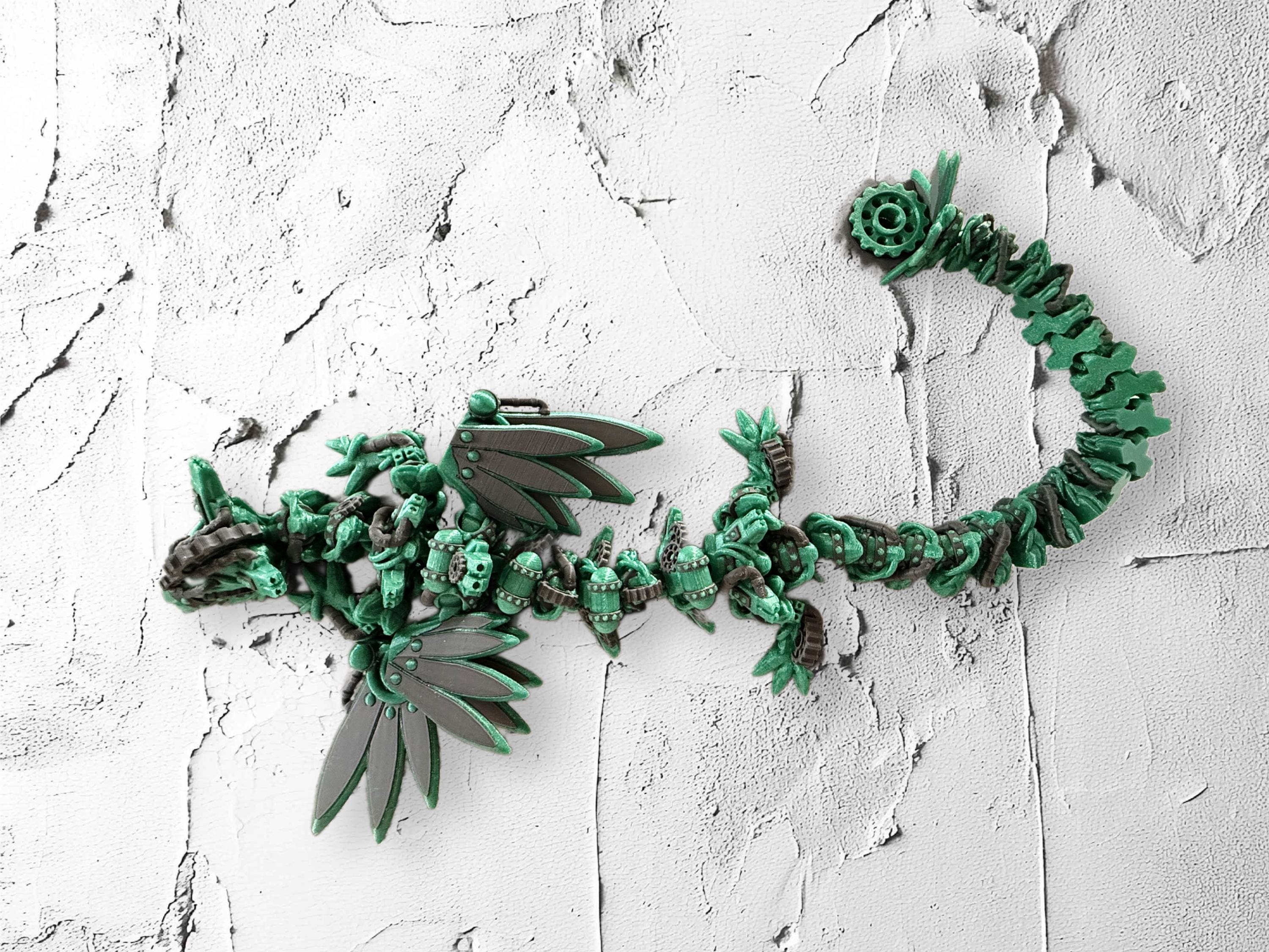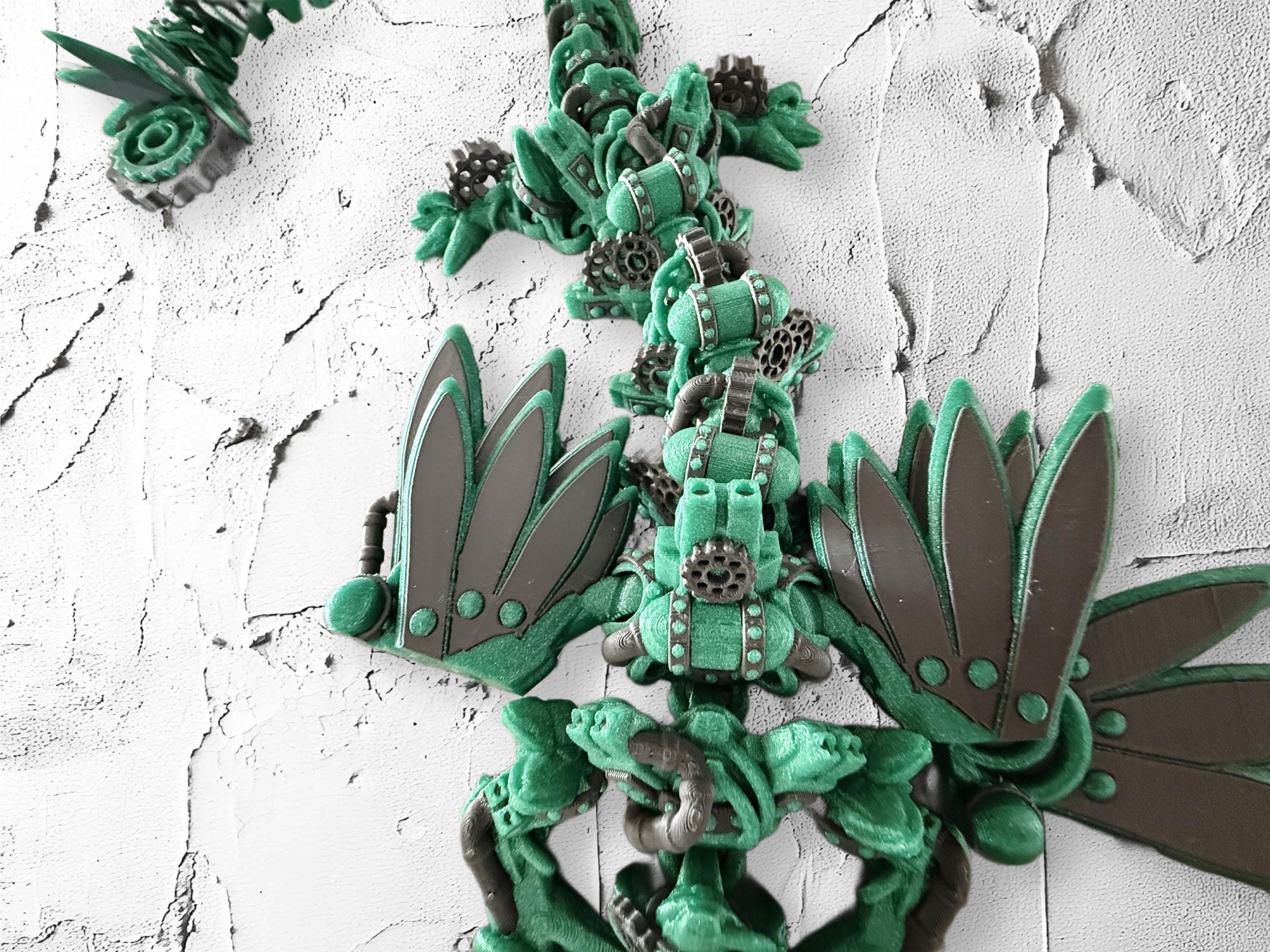 Detailed steampunk dragon with 360 degree rotating wings. Wings can be closed or opened. It is about 12" long.