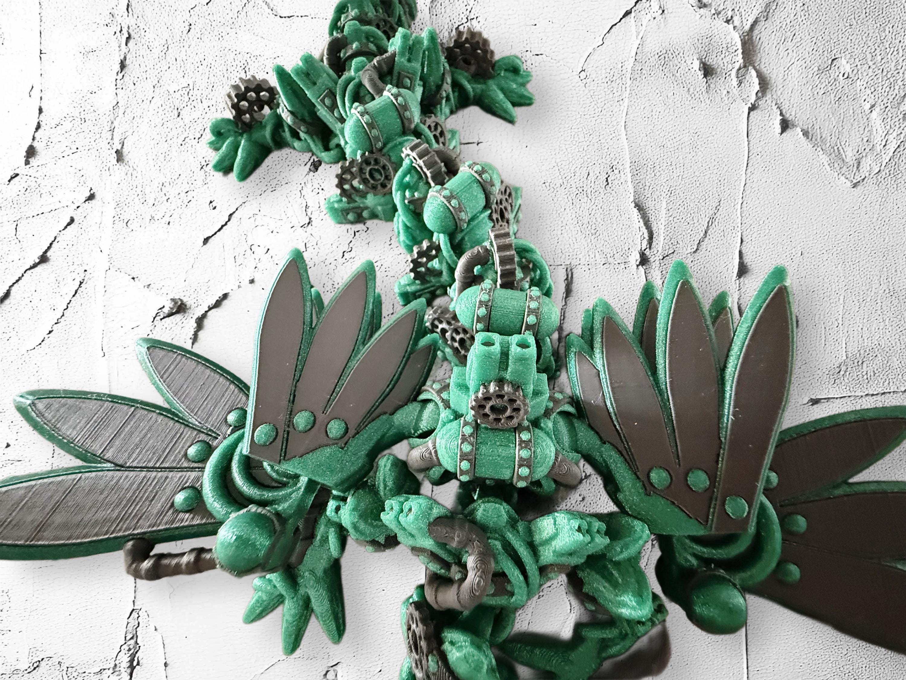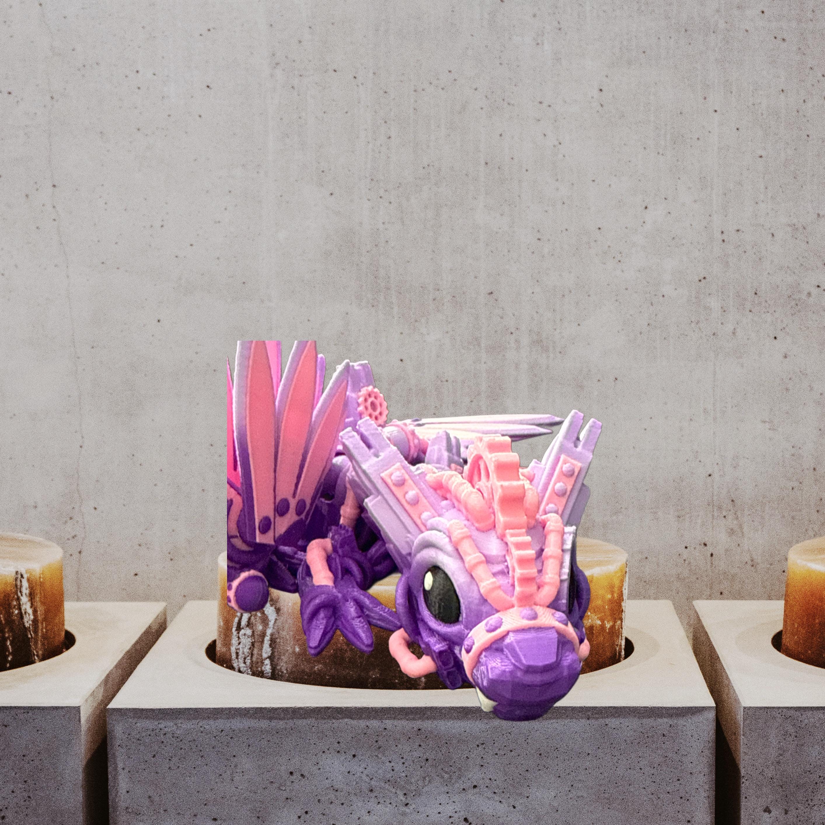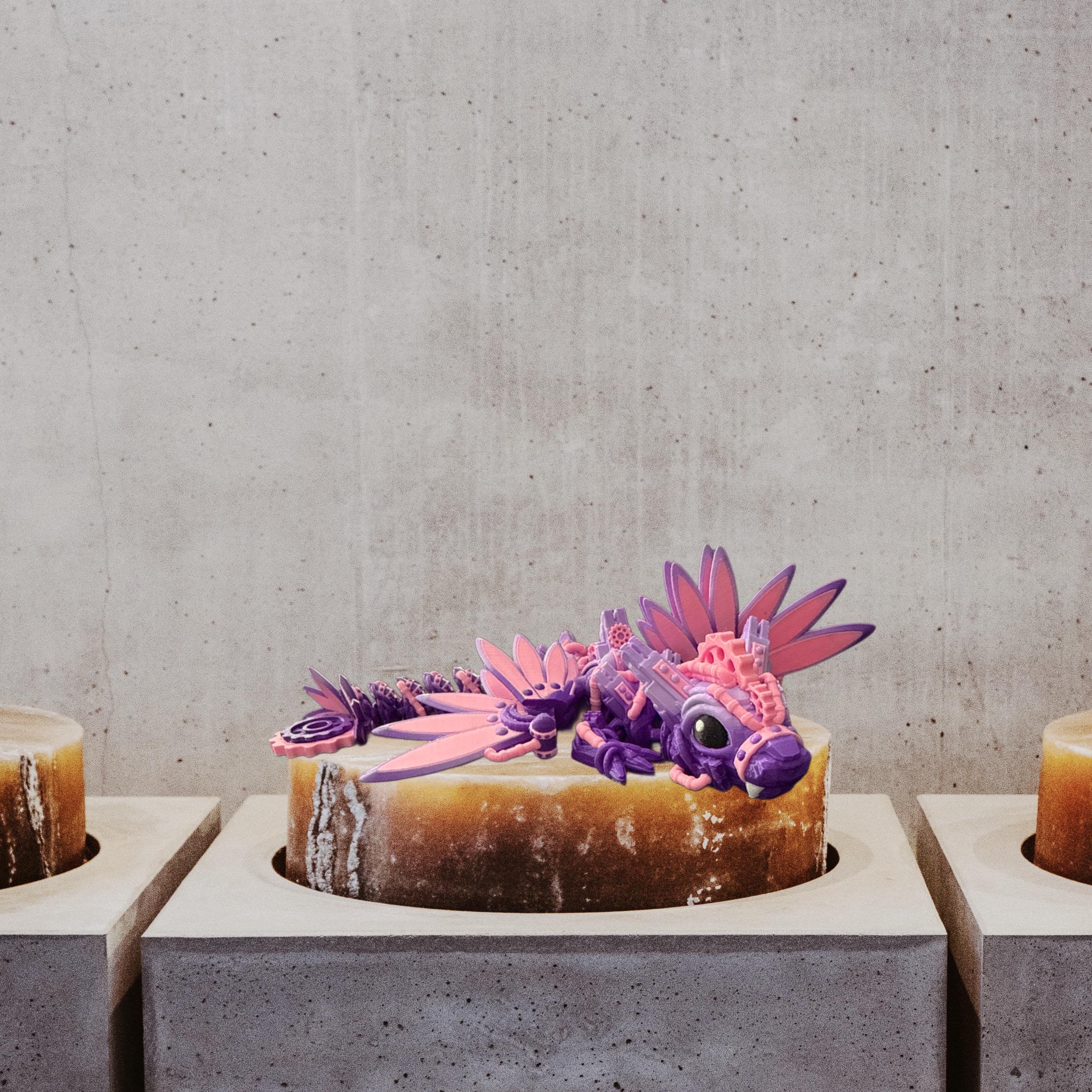 Detailed steampunk dragon with 360 degree rotating wings. Wings can be closed or opened. It is about 12" long.