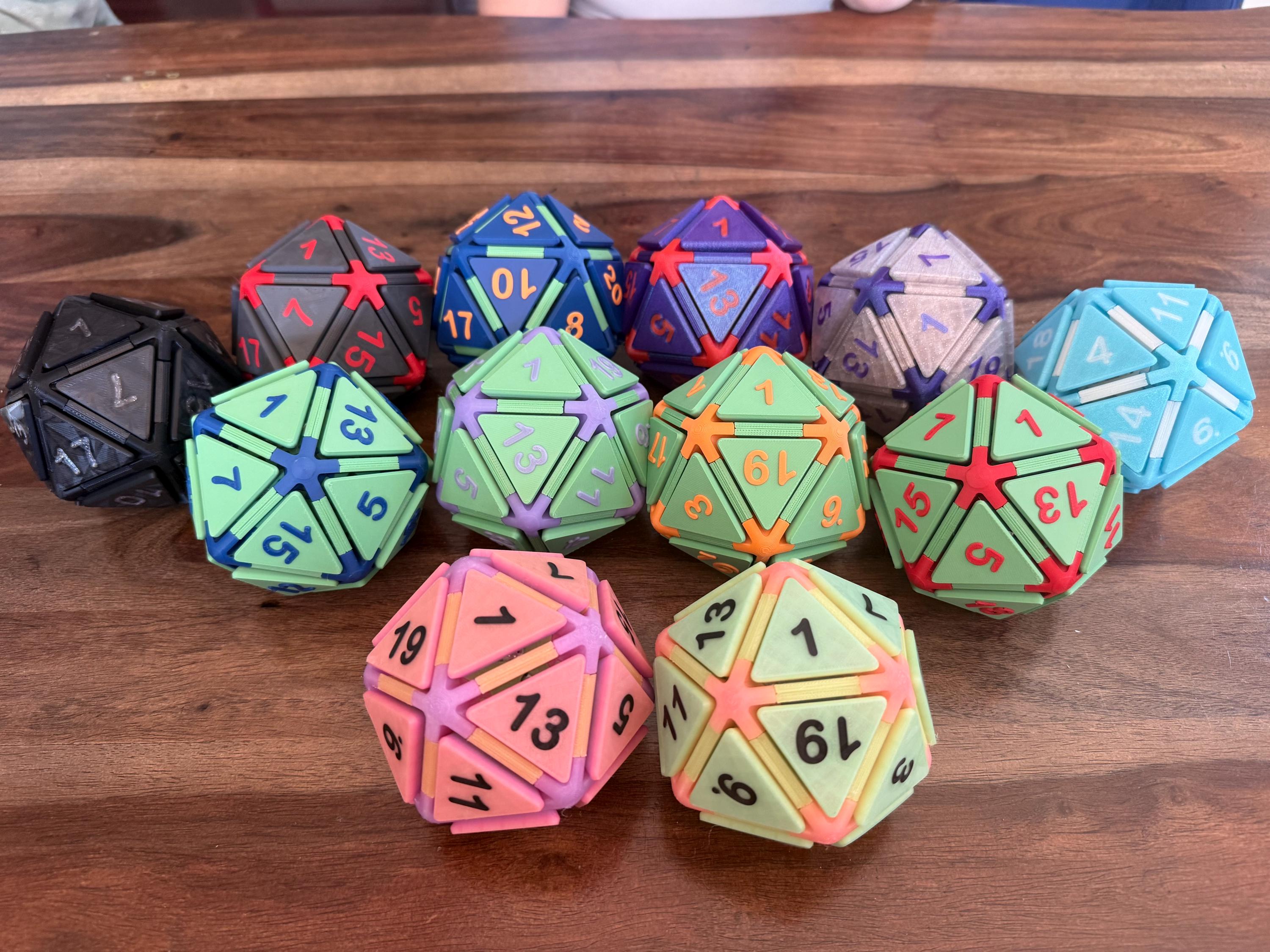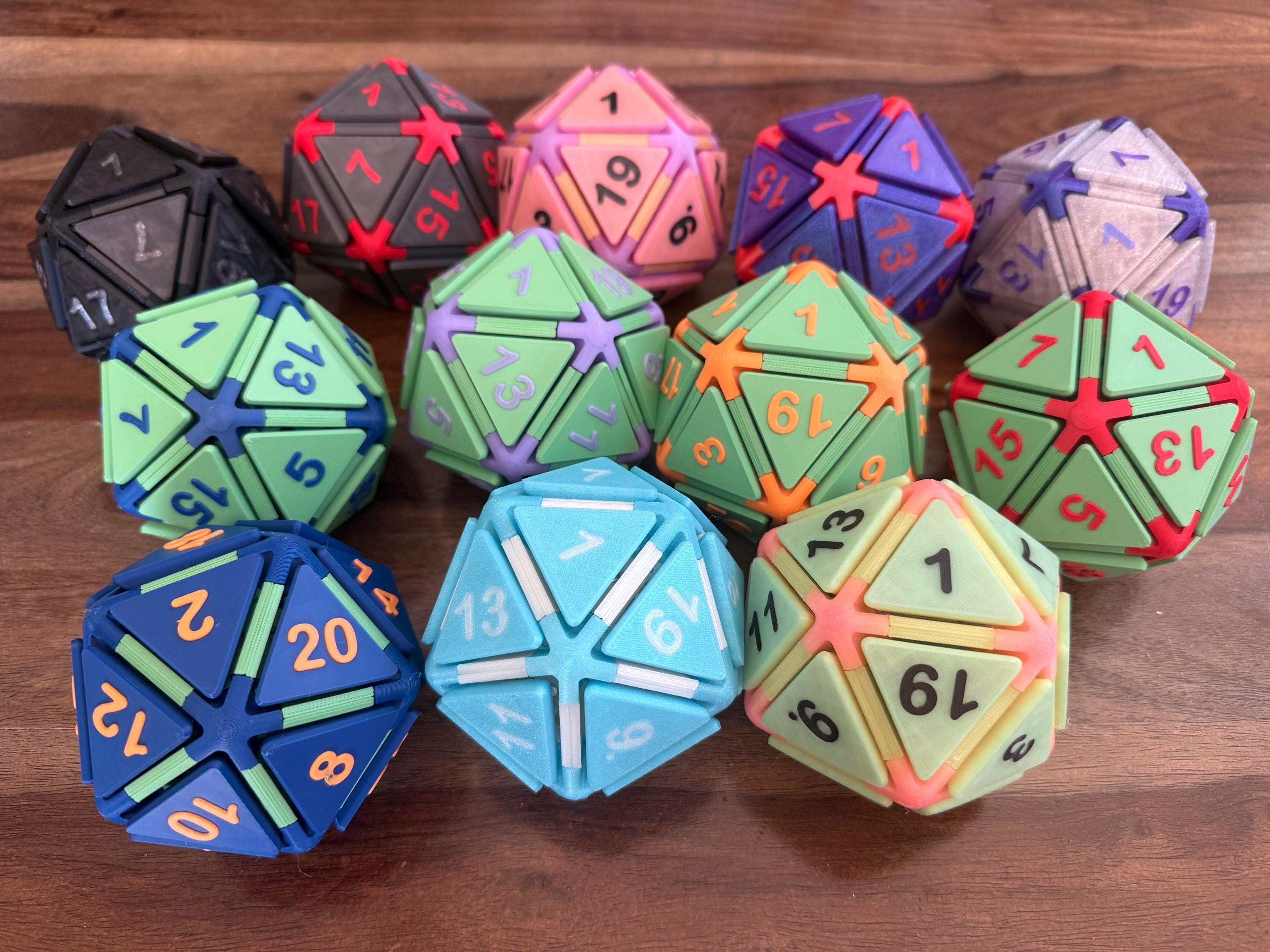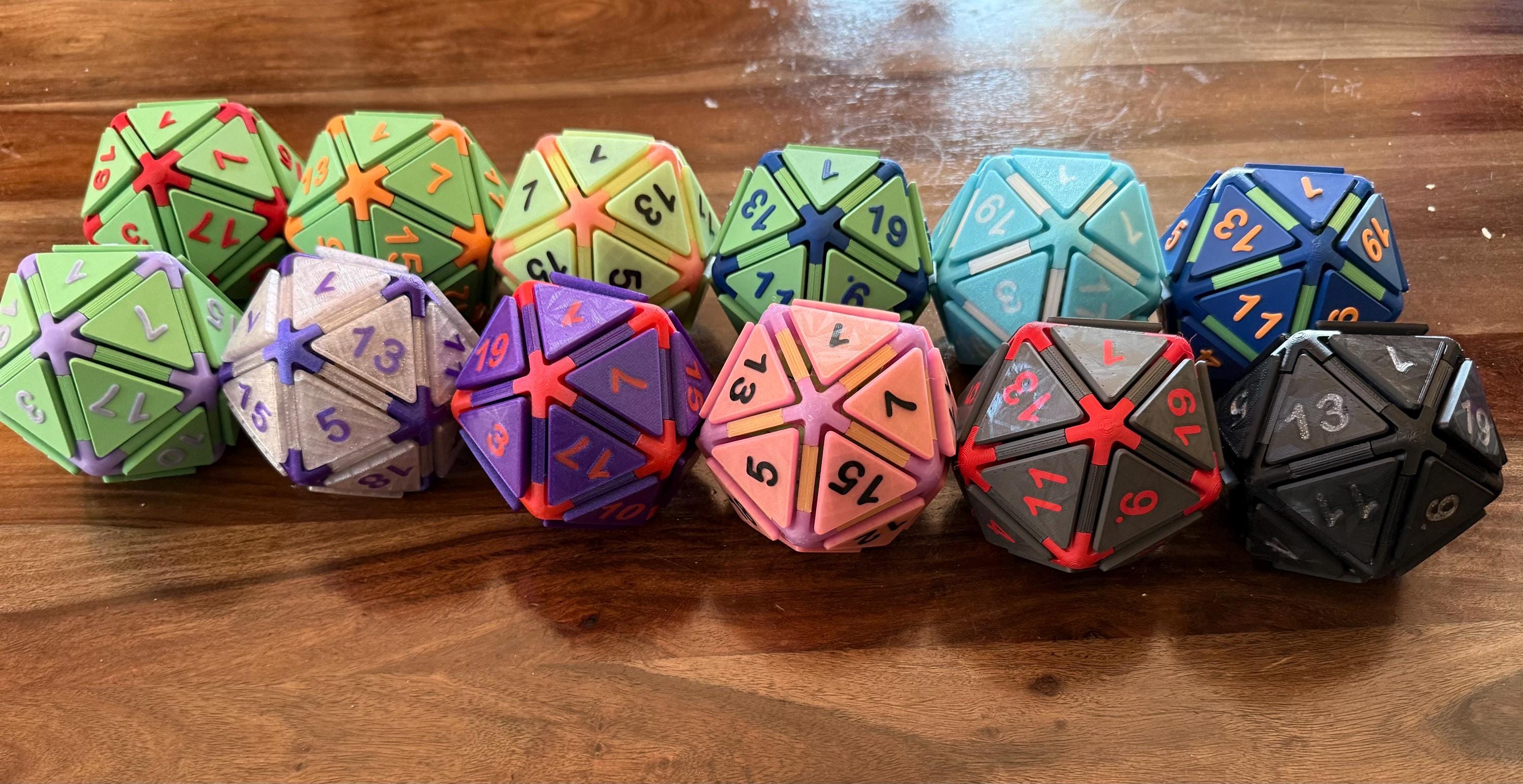 A 20-sided clickable fidget Dice!3D design by Pawpular Prints.