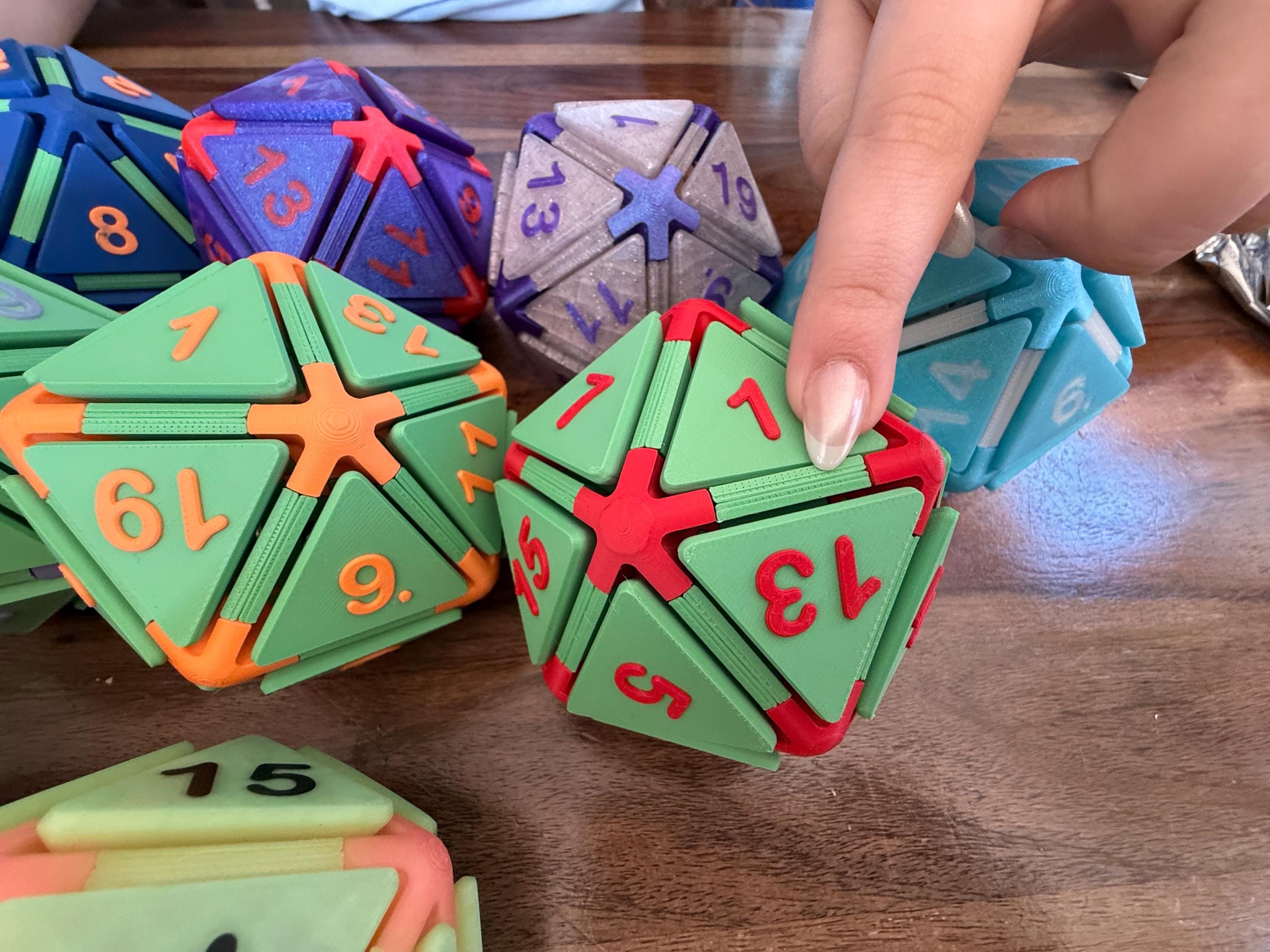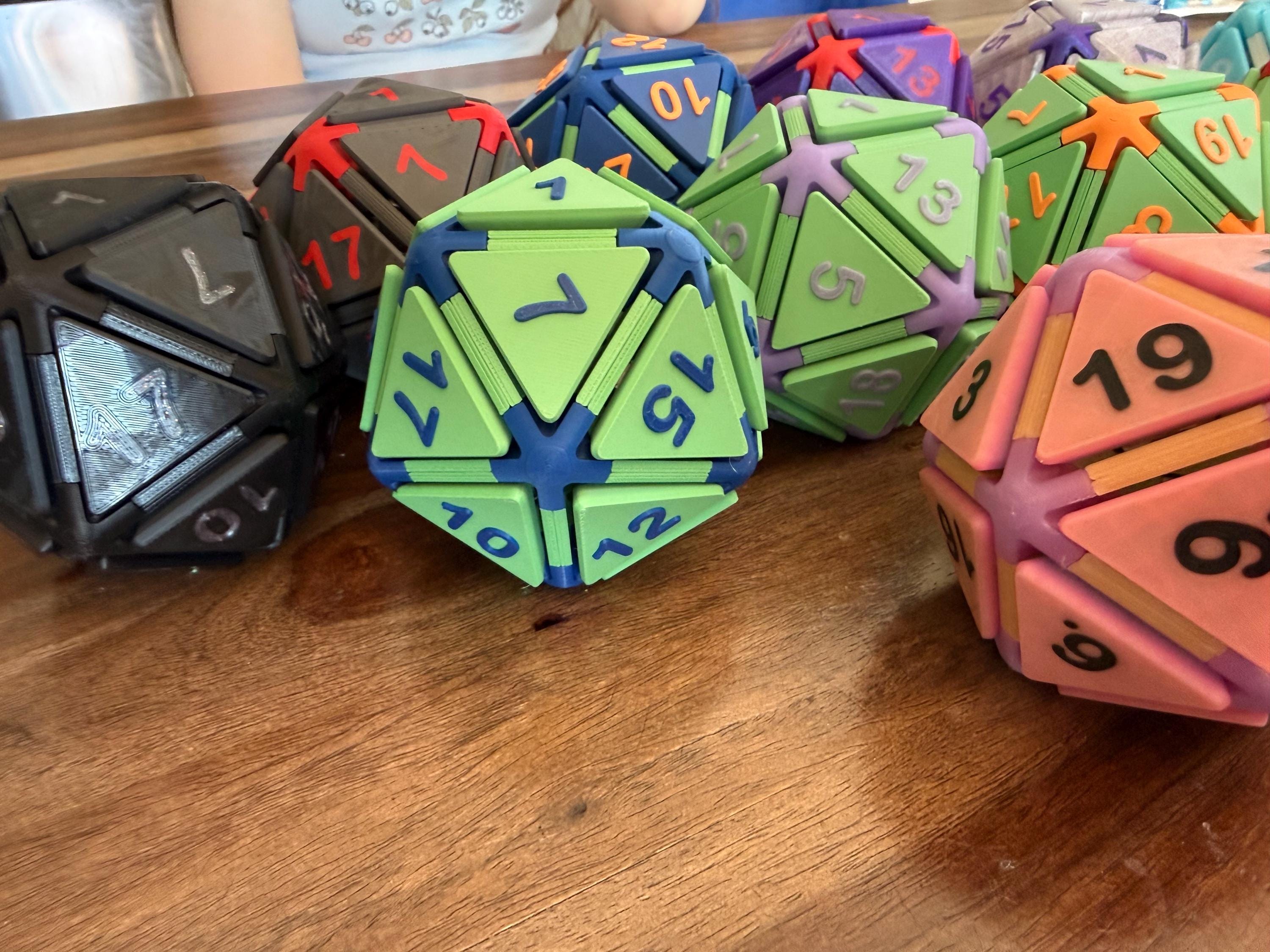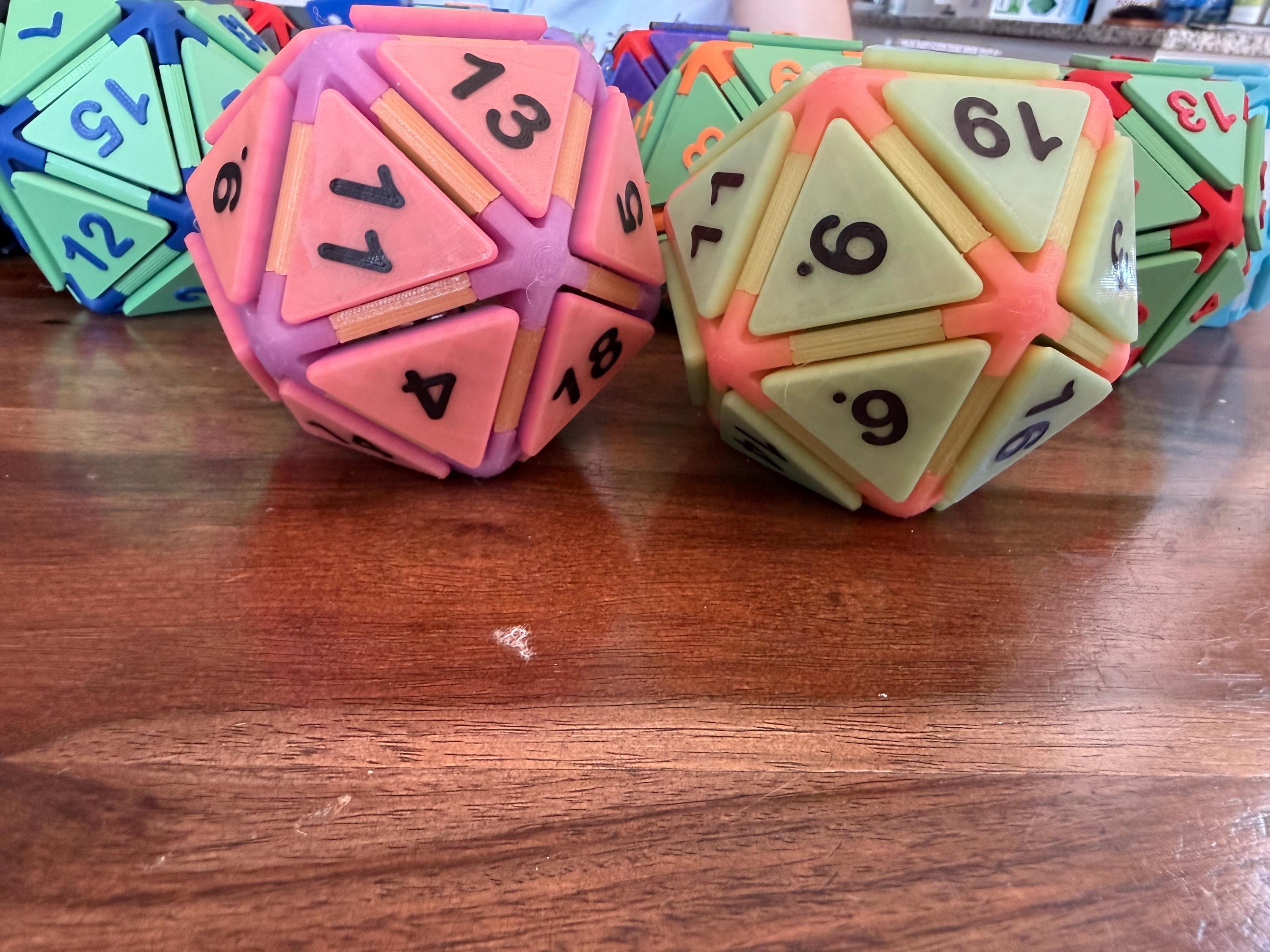 A 20-sided clickable fidget Dice!3D design by Pawpular Prints.