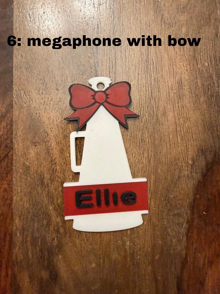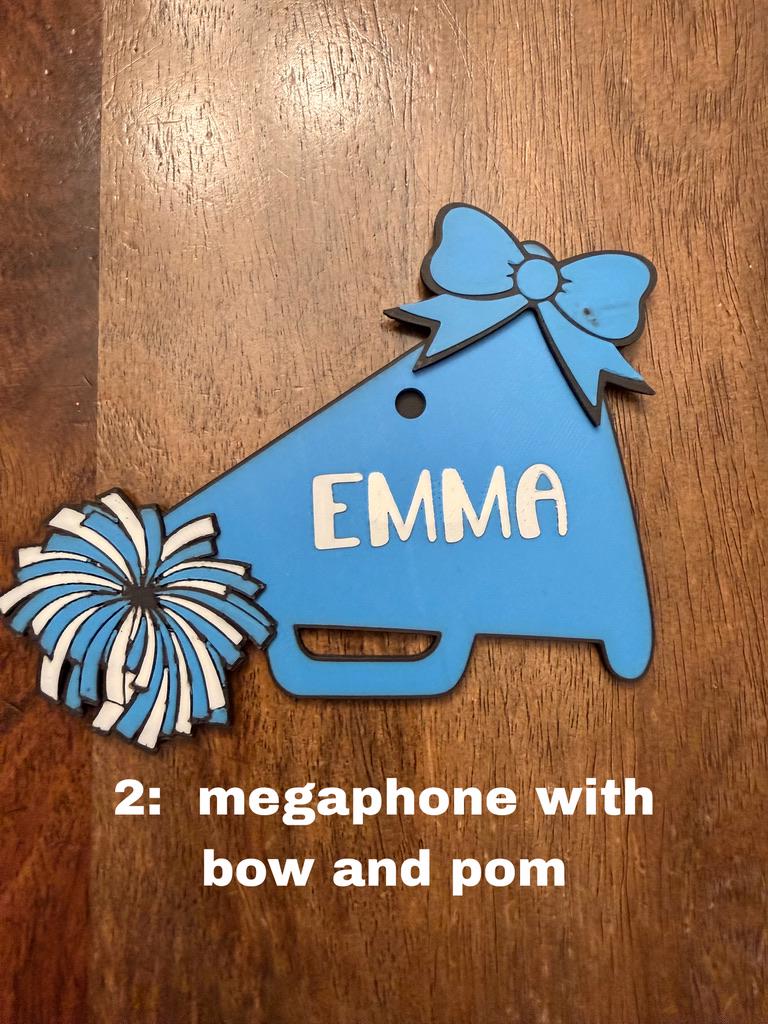 Several variations of Cheer Bag tags available! Any can be customized to your cheerleader's name and team colors.
